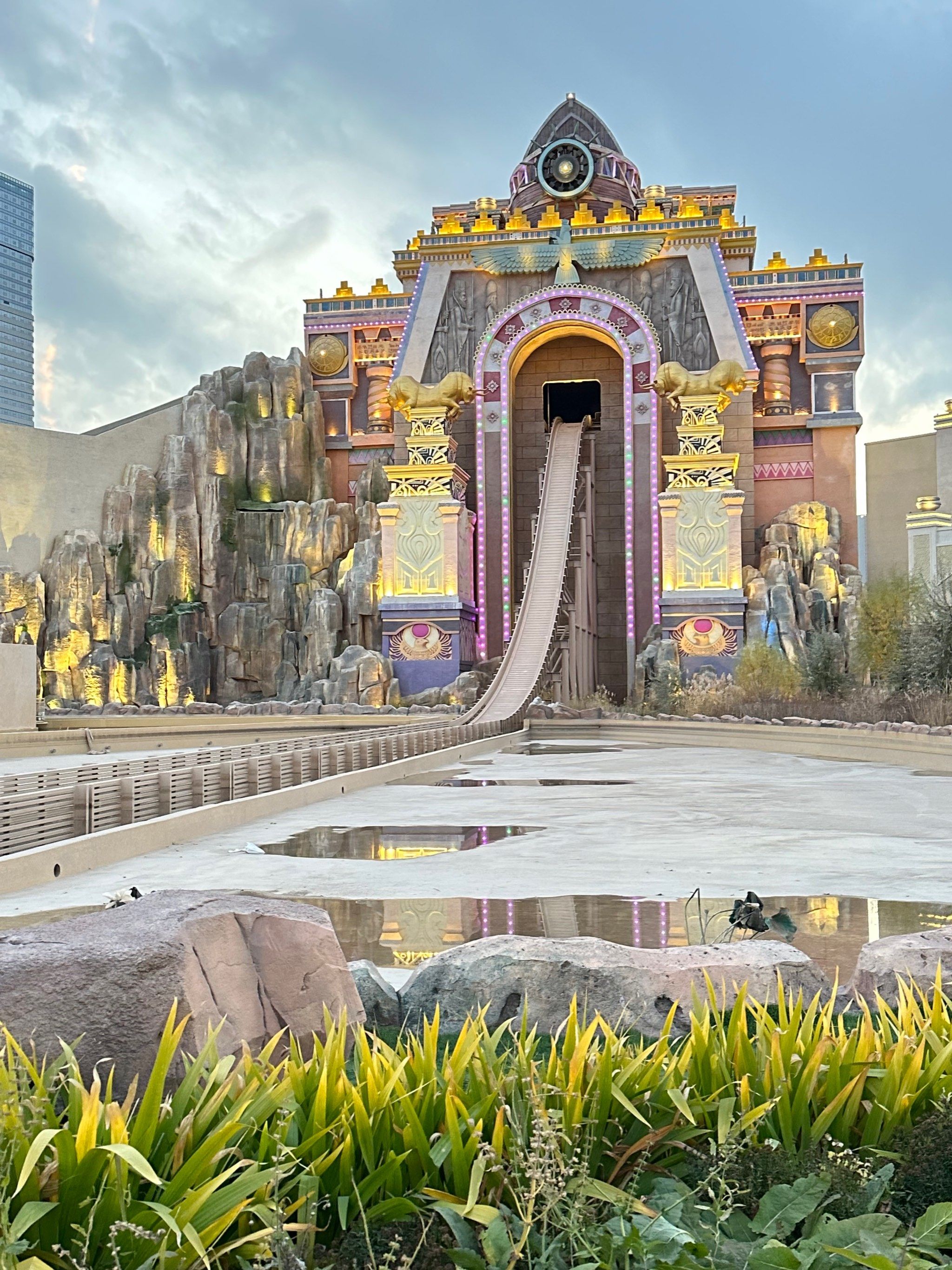 “新疆阿唛龙幻想乐园”是位于乌鲁木齐市经济技术开发区金桥路300号的新疆首座大型主题乐园,于2025年3月29日正式启幕。作为国家4A级景区,乐园以丝绸之路文化为主题,围绕“发展丝绸之路经济带”背景打造,融合丝路故事与现代科技,提供全年龄段、365天全天候的游玩体验。乐园占地面积约36.7万平方米,配套商业综合体约4万平方米,总投资35亿元,被列为自治区重点项目。一期规划了六大主题区,包括金色驼铃、锦绣中华、璀璨星洲、绮丽冬宫、奇幻森林和未来世界,拥有近百套游乐设备,涵盖室内场馆(8个)和室外大型设施(9套),如中亚最高跳楼机“雷神之锤”、中国首个丝路主题裸眼5D影院“穿越丝路”、沉浸式互动项目“西行降魔”等。夜场自2024年7月开放后,新增主题演艺、花车巡游和灯光秀,延长了游玩时间。开放时间随季节调整,亲子游玩推荐关注,优先体验热门项目如“丝路历险”4D影院。