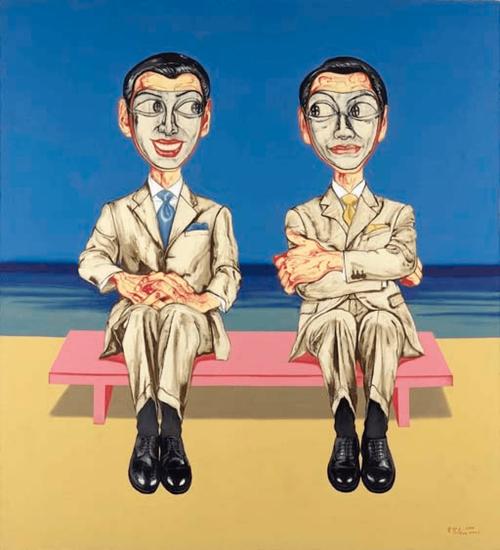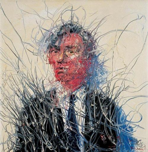 在曾梵志作品里,他不断出人意表的新作已经和过去完全不同了,却依然流露着一种双重解读的 可能一冷不丁地瞅过去似乎很“抽象”,但是你要是细看入去,每一笔触都透露出没有来由,也不知在哪里结束的激情,好像是两只 手同时抓住的画笔自动生成的一段歧路;它的复杂性巳经足够接近使人困惑的“真实” 了,却永远不会像新艺术画家那般流露出画蛇 添足的美学。他的这批画作的“选题”更有意思一一要么是取诸于“大”的星星点点的远空,要么却是沉如古伽蓝的湖石纹理里的微 观世界,它们永远是一种“异地”里的反观,处处显示出一个逐渐愈合却不断被否定的自我一出生成长在毛焦火辣的武汉,成名在 盛大冷寂的北京的曾梵志,是否正在寻找另一个更适合他此时心绪的地理场所? “太湖石”。“太湖石”是曾梵志新作中最具象的题材,在他的画中,“具象”的太湖石只是灵光一现,就变得模糊而格外生动起 来了。在他的笔下,每一幅题为“太湖石”的画仅仅具有园林石的粗略形体和特征,圆形的,在各个方向机会均等的画面,仿佛特意提 示了由棱蹭不平的外表重新分割表象的可能,“内”和“外”的关系由此变得活跃起来了一这时的画布已不再是一块粘稠的三维幻 象的载体,而是各种意义驰骋又嘎然而止的疆域,无限空间的出入口。
