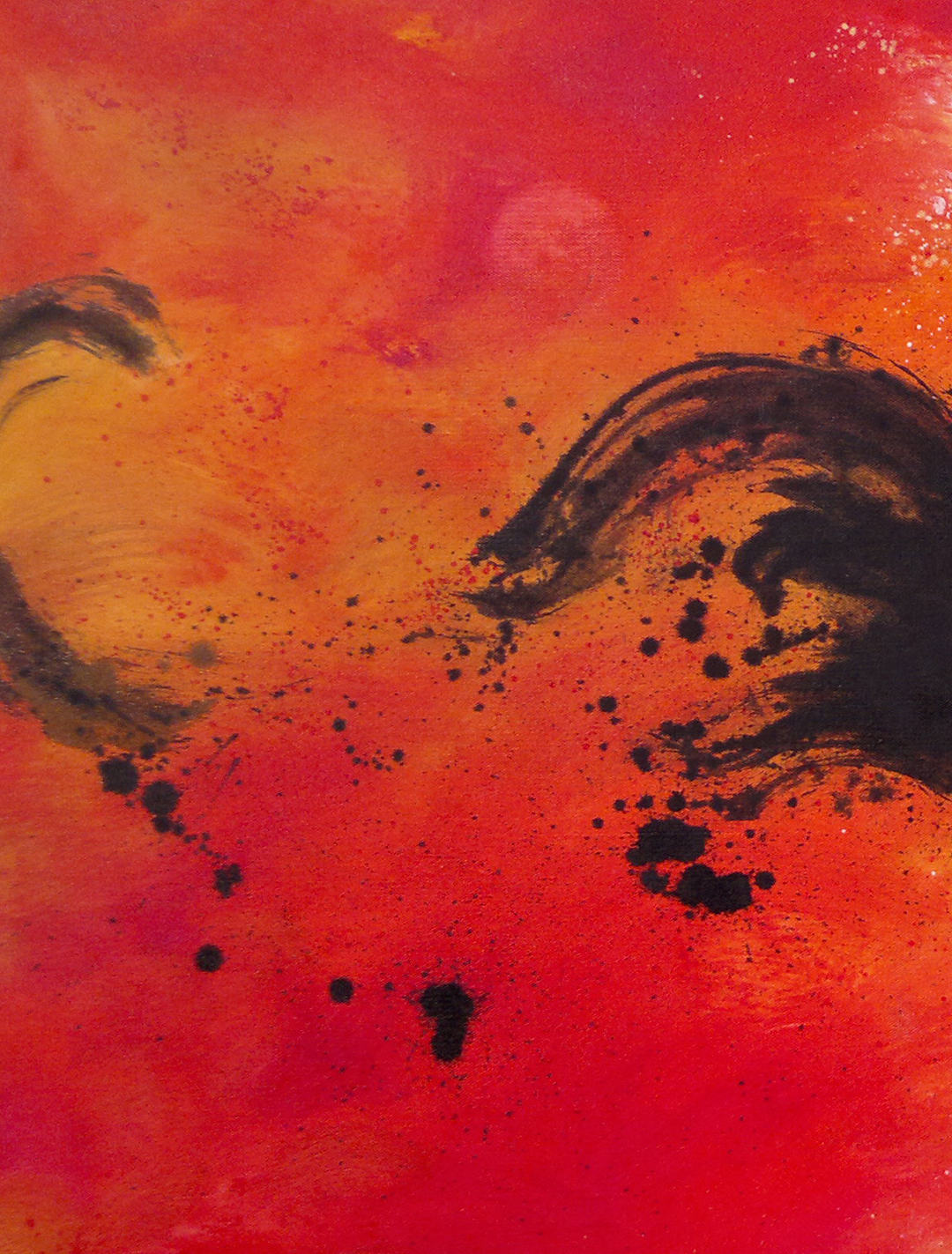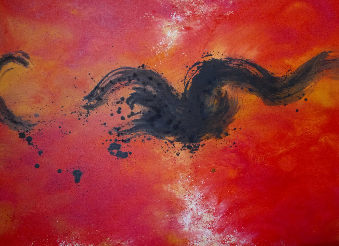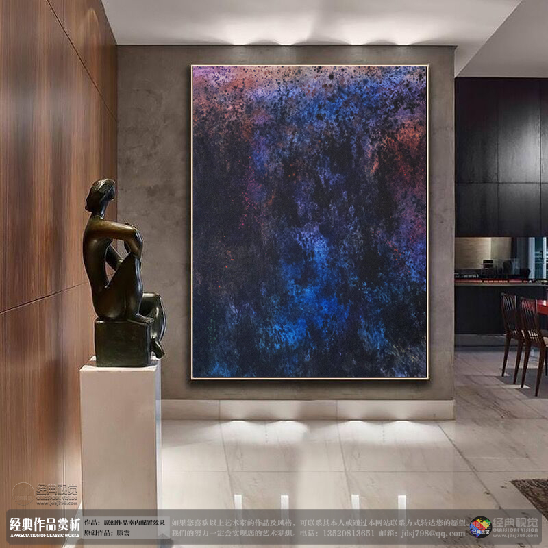 作为当代抽象艺术的重要践行者,腾雲的作品囊括了抽象艺术的诸般经典表现特征:纯烈奔放的色彩、自由泼洒的笔触、非具象的表现形式,摆脱了传统具象绘画的束缚,以更具表现力的艺术语言传递情感与哲思。但他并未局限于对抽象艺术的简单模仿,而是结合自身的艺术理解与文化积淀,创造出了中西结合的水墨油画新节奏——这种新节奏的核心,是对生命运动的极致表现,他用灵动的笔触、变幻的色彩,将生命的激情与力量、生活的美好与哲思,都融入每一幅作品之中,让生命的活力在画布上如火如荼地燃烧,也让观者在欣赏作品的过程中,感受到生命的蓬勃与灵动。