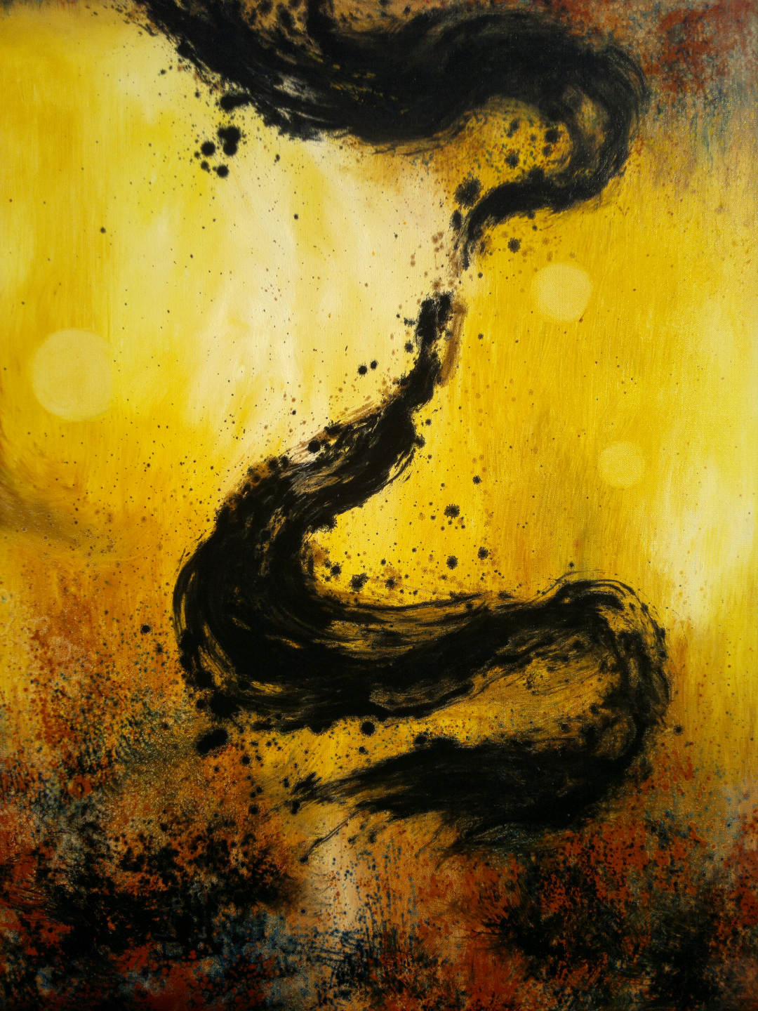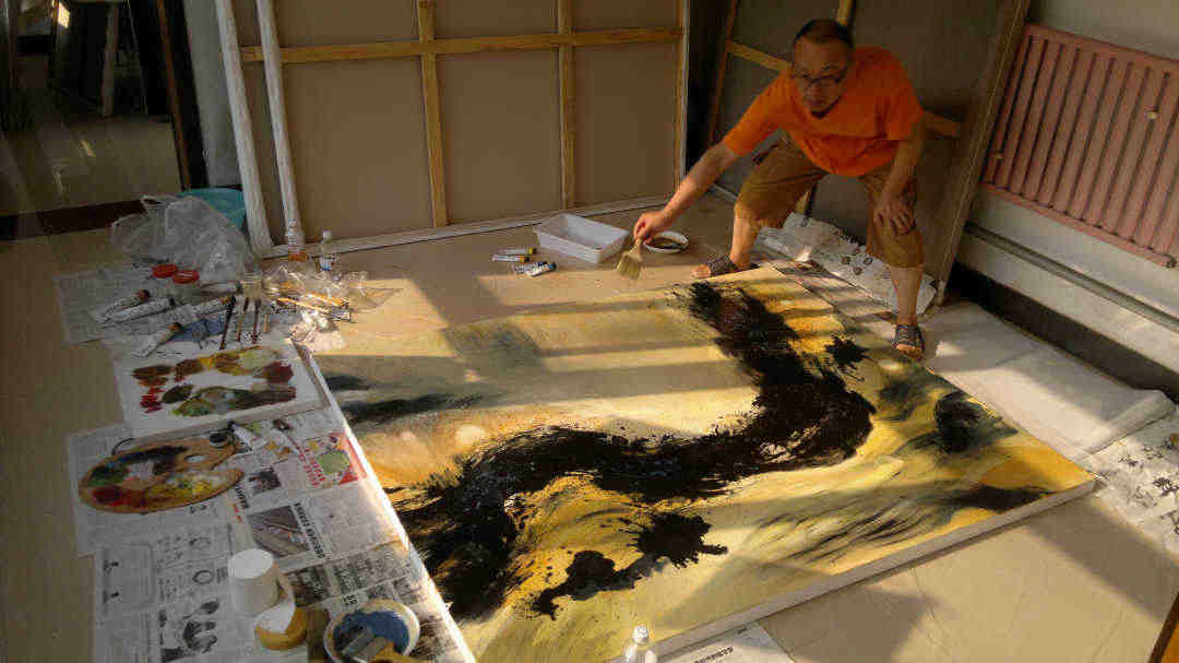 在艺术探索的道路上,腾雲始终秉持着突破传统、兼容并蓄的理念,毅然打破传统绘画的程式化束缚,走出了一条跨越古今、融汇中西的艺术路径。作为深耕当代艺术领域的实践者,他深知传统是艺术的根基,创新是艺术的生命力,因此从未停止在东方与西方艺术之间的对话与探索——既扎根中国传统文化的深厚土壤,汲取水墨艺术的精神意蕴与书法艺术的笔墨精髓,又积极吸纳西方现代绘画的表现形式与油画的色彩技巧,将两种截然不同的艺术语言有机融合,打破了中西艺术之间的壁垒,创造出兼具文化厚度与现代美感的全新绘画空间。