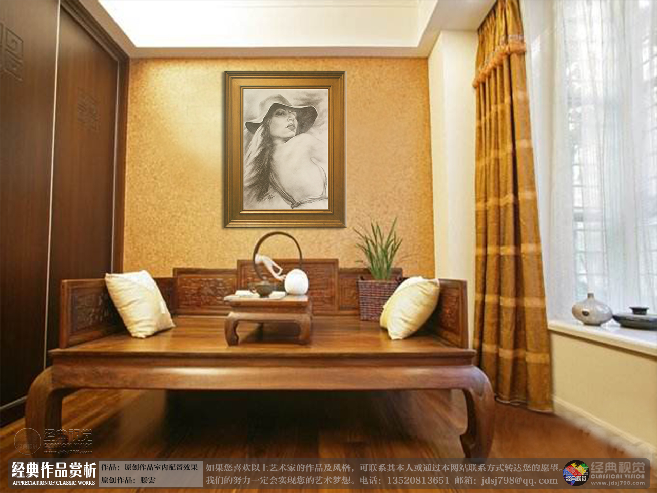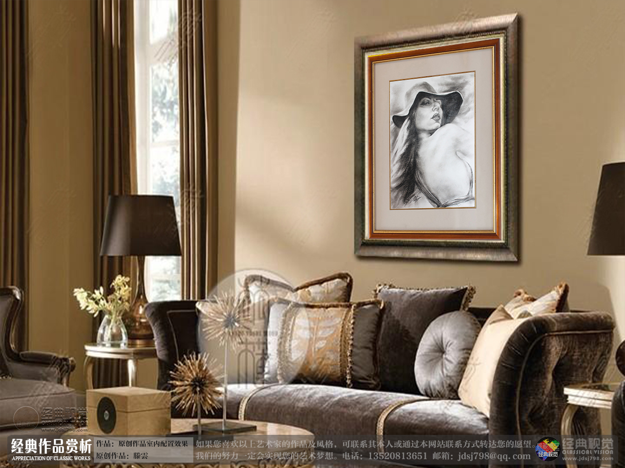 经典艺术网推出了艺术家原创艺术作品在室内空间里的魅力展示。原创绘画作品在墙面的装饰效果和室内气氛有着密切的关系,对渲染美化室内文化艺术环境起着非常重要的作用,为创造室内空间的艺术效果,墙面本身的艺术性不可忽视。更加能体现出室内主人的文化修养和个人品味。